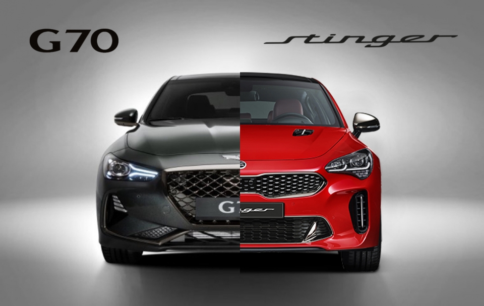 제네시스 G70과 기아차 스팅어는 플랫폼 및 파워트레인을 공유하는 만큼 출시 전부터 많은 관심과 비교가 이어졌다. 출시 1년이 지난 현재, 국내외 시장에서 두 차종의 행보는 극명히 엇갈리고 있다.