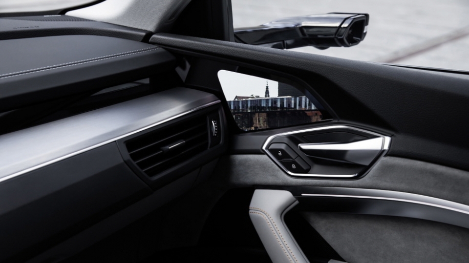이보다 앞서 공개된 아우디 e-트론에도 사이드미러 대신 카메라가 적용됐는데, 이 차 역시 안쪽에 작은 모니터가 달려있습니다. 디자인은 신형 ES보다 훨씬 깔끔하지만, 기본적인 구현 방식은 같습니다.