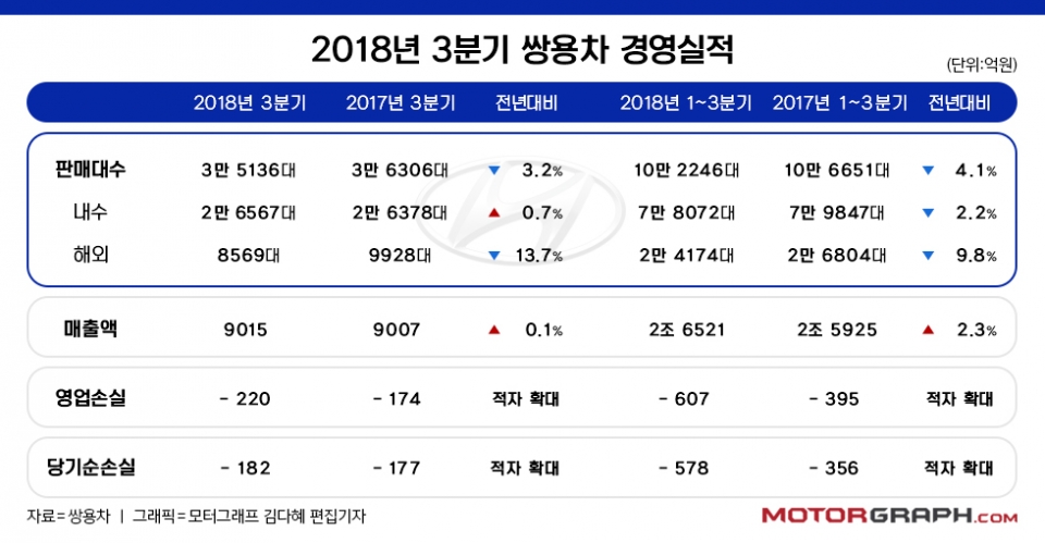 쌍용차가 2018년도 3분기 경영실적을 발표했다.