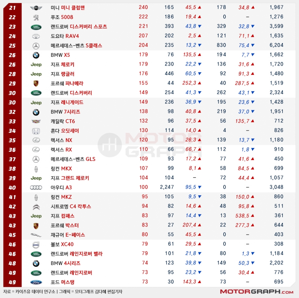이외 미니(1183대), 혼다(881대), 포드(753대), 지프(691대), 볼보(687대) 등 순으로 10월 판매 성적이 집계됐다.