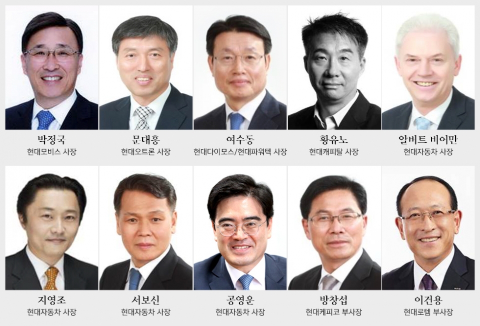 한편, 생산품질담당 여승동 사장, 현대모비스 임영득 사장, 현대다이모스 조원장 사장, 현대제철 강학서 사장, 현대로템 김승탁 사장 등은 고문으로, 현대엔지비 오창익 전무는 자문으로 위촉됐다.