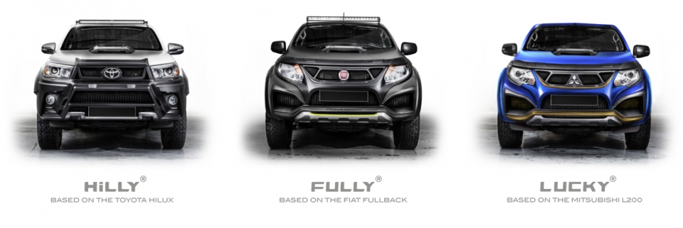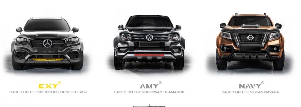 픽업 디자인에서는 폭스바겐 아마록을 기반으로 한 아미(AMY) 라인, 닛산 나바라를 기반으로 한 네이비(NAVY), 도요타 힐룩스를 기반으로 한 힐리(HiLLY), 피아트 풀백을 기반으로 한 풀리(FULLY), 미쓰비시 L200을 기반으로 한 럭키(LUCKY) 라인업이 있다.