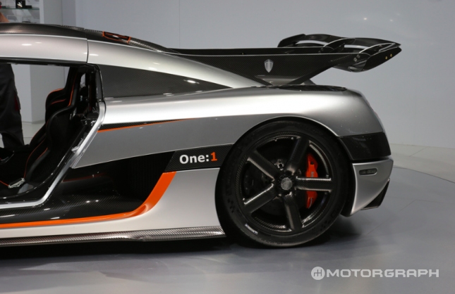 코닉세그 원:1의 이름은 차체 중량과 최고출력이 1:1 비율로 같다는 의미에서 지어졌다. 원:1의 무게는 1341kg으로, 최고출력인 1341마력과 같다. 1마력이 감당해야 하는 무게가 1kg에 불과한 셈.