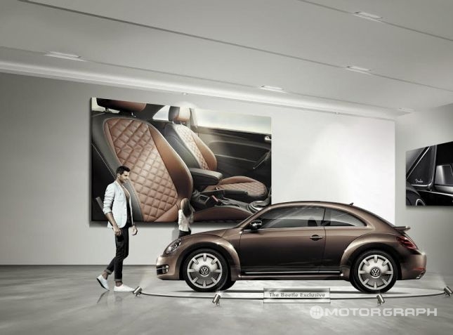 더 비틀 익스클루시브는 폭스바겐 고성능 디비전인 R GmbH가 제작을 맡은 모델이다. '토피 브라운'과 '캔디 화이트', '딥 블랙' 등 단 3가지로만 판매되며, 오리지널 비틀의 독창적인 아이덴티티를 살린 18인치 “디스크(Disc)” 알로이 휠이 적용됐다.