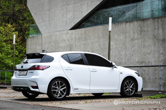 렉서스 최초의 해치백이라지만 어색함은 크지 않다. 정통 해치백의 비율을 잘 따랐다. F 스포트 모델에는 스핀들 스릴과 함께 과격한 인상을 주는 앞범퍼와 리어스포일러, 디퓨저 등이 장착됐다. 단순히 멋을 위한 패키지가 아니다. 리어스포일러나 디퓨저는 무척 정교하게 만들어졌다. 공기흐름을 원활하게 하는 동시에 차체 뒷부분이 세단에 비해 상대적으로 가벼운 해치백의 약점도 보완해준다.