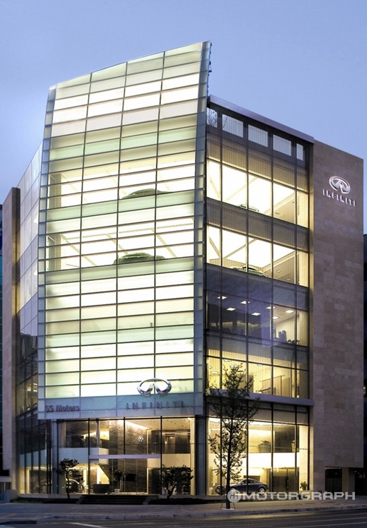 이곳은 이전에도 자동차 전시장이었다. 지난 2012년까지 인피니티 딜러가 입주해 있던 건물이다. 직선과 곡선, 전통적인 한지와 나무를 적절히 배합해 실내 공간의 아름다움과 고급감을 극대화했다. 내부의 조명은 외부로 스며나와 동양적인 윤곽을 밝히는, 그래서 어떤 조명도 허투루 쓰이지 않는 실로 아름다운 건축물이었다. 닛산의 글로벌 브랜드 콘셉트에 따라 만들어진 세계 최초 건물이었고, 당연하게도 여러 건축 디자인 상도 수상했다.
