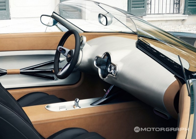 미니 슈퍼레제라 비전 콘셉트는 미니와 이탈리아 코치빌더 ‘투어링 슈퍼레제라(Touring Superleggera)’가 함께 제작한 모델이다. 신형 미니 쿠퍼의 앞모습이 1960년대 로드스터에 얹혀진 느낌이다. 코치빌더 투어링 슈퍼레제라는 주로 알파로메오의 클래식카를 현대적인 디자인으로 재해석했는데, 이번 미니도 마찬가지다.