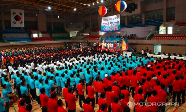 공주 백제 체육관에서 열린 '2014 한마음 전진대회'에는 쌍용차 국내영업본부 송영한 전무를 포함해 임직원 1600명이 참석해 역대 최대 규모로 열렸다. 쌍용차는 지금까지 지역별 한마음 전진대회를 진행해 왔으나 올해에는 전국 규모로 확대했다.