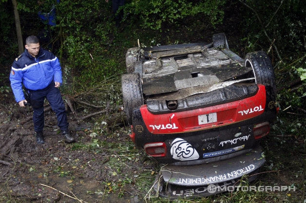 세바스티앙-로브와 그의 코 드라이버 다니엘-엘레나가 타고 있던 시트로엥 WRC 랠리카는 빗길에 미끄러지며 도로를 벗어났다. 랠리카는 도로 옆으로 굴러떨어졌지만 두명의 드라이버는 무사히 사고 현장을 빠져나왔다.
