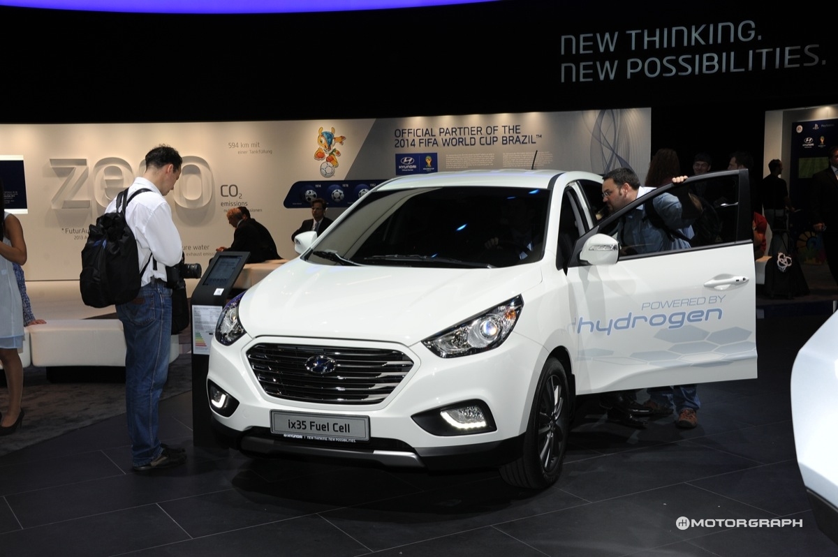 지난 9월 열린 '2013 프랑크푸르트모터쇼'에서도 현대차는 전기차나 플러그인 하이브리드카를 단 한 대도 전시하지 않았다. 다른 업체에 비해 미래 기술이나 비전을 제시하기 보다는 판매 계획과 실적을 강조하데 그쳤다.