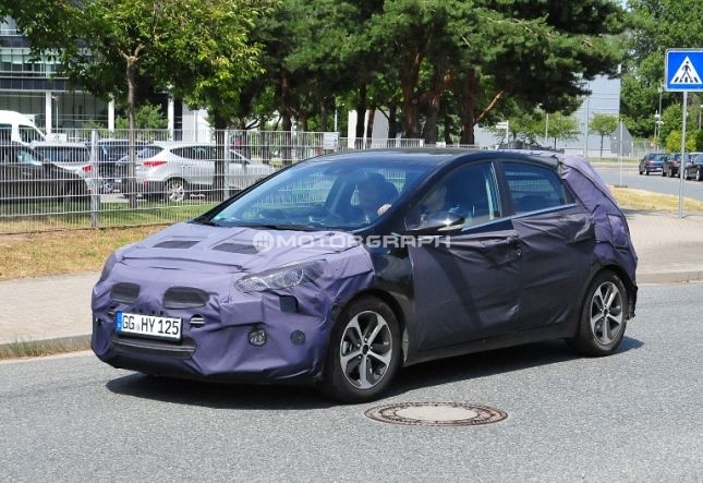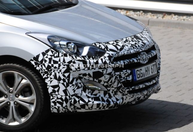 차량 전체를 위장막으로 가린 i30의 경우 위장막 사이로 일체형 헥사고날 그릴이 적용된 모습을 확인할 수 있다. 기존의 곡선형 프레임이 없어지고, 직선형 프레임이 가로로 배치됐다.