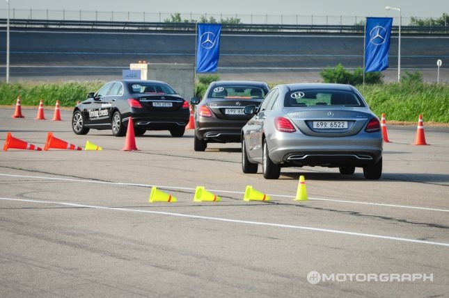 독일에서 넘어온 메르세데스-벤츠의 드라이빙 아카데미 강사진은 자동차성능연구소의 거대한 공터에 오밀조밀한 간이 서킷을 만들었다. 슬라럼과 시케인, 난해한 헤어핀이 난무했다. 신형 C클래스의 핸들링을 테스트하기엔 더할나위 없이 좋은 환경이다.