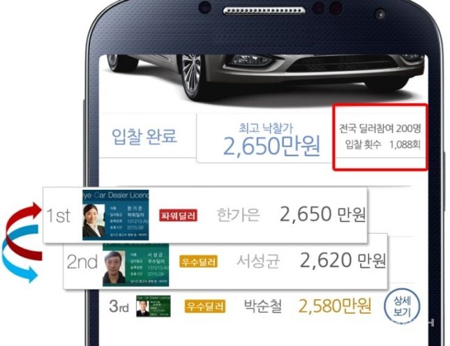 스마트폰이 일반화되면서 간단하고 손쉬운 경매 참여가 가능해졌다. 어플리케이션을 설치하는 것만으로 전국적인 딜러 네트워크망을 갖게 되며 실시간으로 입찰 상황을 확인할 수 있다. 딜러들의 활동 내역이나 입찰 가격이 공개된다. 입찰 가격이 공개되기 때문에 딜러들의 경쟁이 치열해져 자연스럽게 판매 가격이 상승한다.