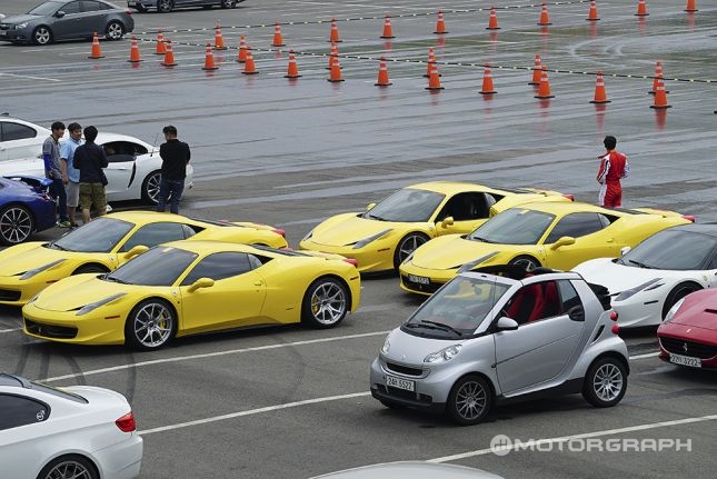 행사 당일, 전국에서 내로라하는 스피드 마니아들이 최고의 스포츠카들을 몰고 인제스피디움에 모였다. 미니에서부터 M3, 로터스, 포르쉐, 람보르기니, 페라리까지... 서킷을 달리고 싶어 안달 난 150여대의 스포츠카가 함께 모인 모습은 그야말로 장관이었다. 덕분에 눈은 호강했지만, 한편으론 걱정도 들었다. 과연 제네시스가 저들 사이에서 어깨를 나란히 할 수 있을까.