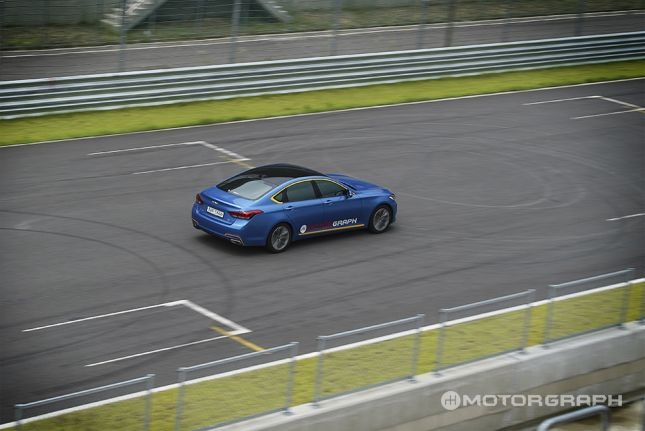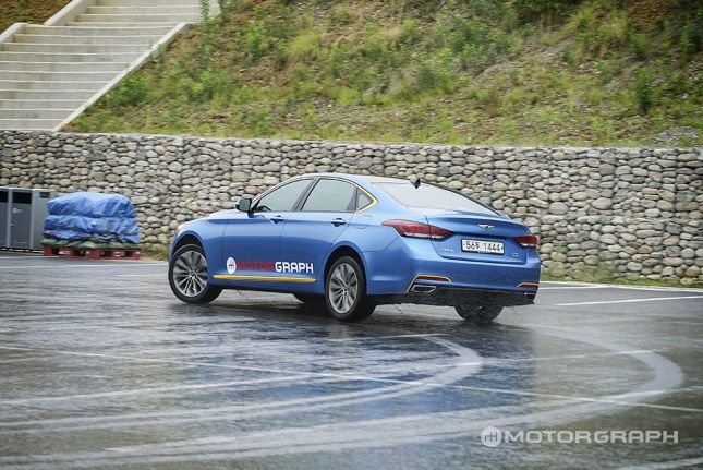 그러나 평지에 들어서자 제네시스의 주행 능력은 기대 이상으로 뛰어났다. 오르막 구간을 빠져나오면 인제서킷에서 가장 높은 지점에 펼쳐진 200m 가량의 직선도로가 나오는데, 살짝 굽은 코너로 이어지지만 휘어진 각도가 그리 크지 않아 계속 가속하면서 달릴 수 있었다.