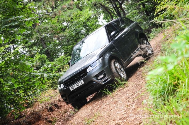 시승한 레인지로버 스포츠 오토바이오그래피는 에어 서스펜션을 통해 평소보다 최대 135mm까지 차체를 높일 수 있고, 최대 도강 높이는 850mm에 달한다. 오버행을 줄이고 휠베이스를 178mm까지 늘렸지만 램프각은 27.2도, 진입각은 33도, 이탈각은 31도에 이른다. 차체를 높이지 않았을 때와 그 각도 차이가 심한 점도 특징이다. 온로드를 염두한 모델이지만 오프로드에서도 충분한 제실력을 발휘할 수 있도록 만들어졌다.