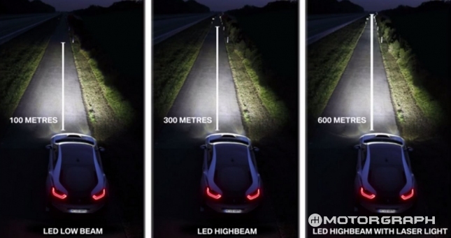 또, "레이저 램프는 어떤 램프보다도 맑고 밝은 빛을 내면서도 작은 크기의 헤드램프 설계가 가능하다"면서 "램프 도달 거리가 LED 램프보다 2배나 길어 야간 운전 시 더욱 향상된 시야를 확보할 수 있을 것"이라 말했다.