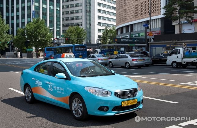 르노삼성 SM3 Z.E. 전기택시는 하늘색 바탕에 주황색 물결무늬 디자인이 추가돼 기존 택시와 차별화됐으며, 요금은 중형택시와 동일한 기본요금 3000원에 142m 당 100원이 적용된다.
