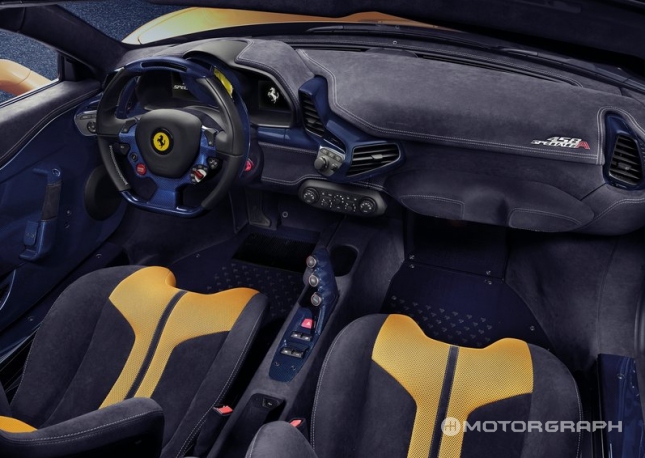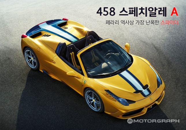 ‘스파이더’ 대신 이름에 붙은 A는 ‘아페르타(Aperta)’를 의미하며 이는 이탈리아어로 ‘열다’는 뜻이다. 기존 458 스파이더와 동일한 하드톱 시스템이 적용돼 열고 닫는데 걸리는 시간은 14초에 불과하다. 건조중량은 1340kg로 458 스페치알레 쿠페 모델에 비해 50kg 가량 무겁다.