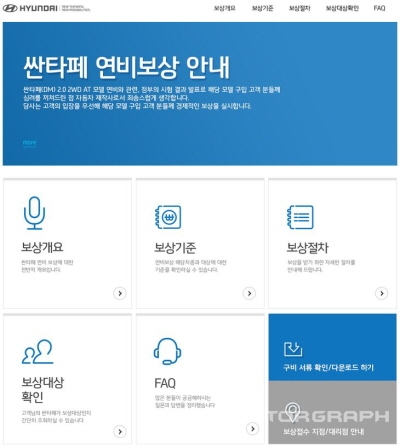 현대차는 1일, '싼타페 연비 보상 안내 홈페이지(http://santafeinfo.hyundai.com)'를 열고 본격적인 보상을 진행한다고 밝혔다.