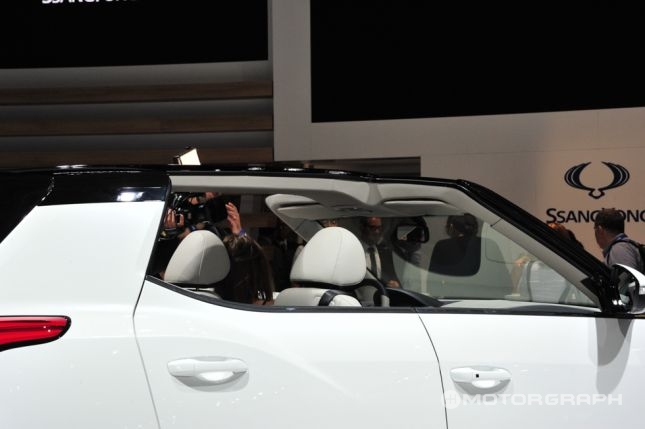 ‘도심의 일상 속에서 즐기는 자연’이란 테마를 통해 디자인된 XIV-에어는 오픈형의 타르가톱(Targa Top) 구조로 트렌디한 감각을 살리는 동시에 측면은 간결한 라인을 활용해 경쾌한 리듬감을 살렸다. 특히, 타르가톱 구조는 개방성을 극대화해 바람 속을 달리는 드라이빙의 즐거움을 만끽할 수 있게 한다고 쌍용차는 설명했다.