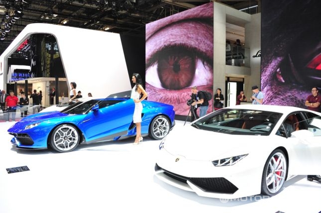 아래는 2014 파리 모터쇼에 참가한 람보르기니의 부스.