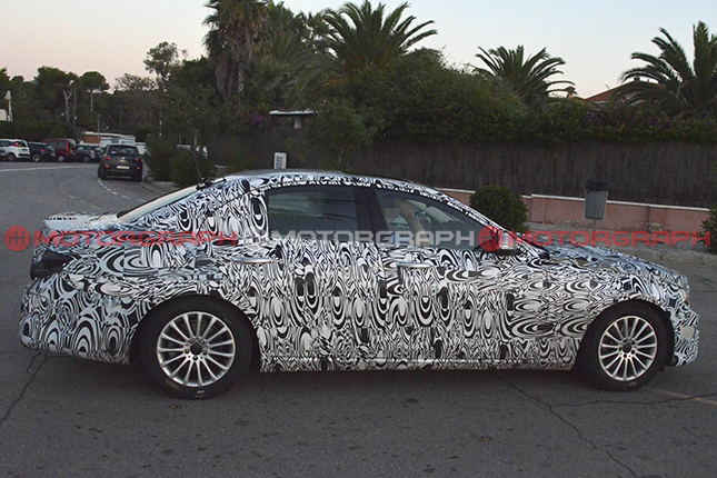 테스트 차량인만큼 헤드라이트는 LED나 제논램프가 아닌 할로겐이 장착된 상태다. 테일램프는 플라스틱 위장용 장식이 더해져 디자인을 알아볼 수 없게 가려놨다. 이 플라스틱 위장 장식은 트렁크 상단부, 보닛부에도 더해졌다. 알루미늄 휠은 기존 모델에 사용되던 휠을 이용했다.