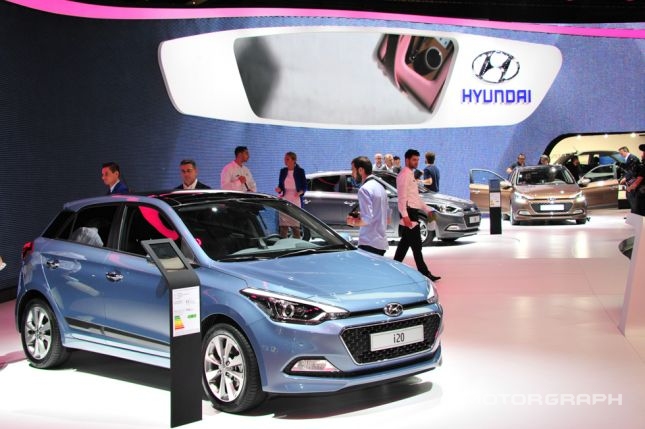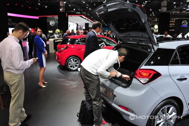 ▲ 현대차 부스는 생기가 돌았고, 임원들의 표정에서는 자신감이 넘쳤다. 신형 i20를 공개하기 때문이다. 신형 i20는 꽤 많은 공을 들인 소형차다. 현대차가 최근 강조하고 있는 고장력 강판이 차체에 사용됐고, 플루이딕 스컬프처 2.0 디자인도 적용됐다. (사진=파리 김상영 기자)