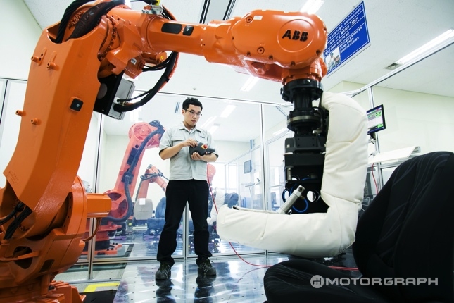 검사하는 항목은 300여가지에 달했다. 이 중 후방 추돌 시험을 비롯해 안전벨트 부하 및 파단 테스트, 사이드 에어백 전개 시험 등 보기만 해도 깜짝 놀랄만한 시험이 계속 됐다. 특히 인체모형과 유사한 로봇을 이용해 30만회 이상 앉았다 일어났다를 반복시키는 시험 등은 상당한 것보다 훨씬 쉽지 않아 보였다.
