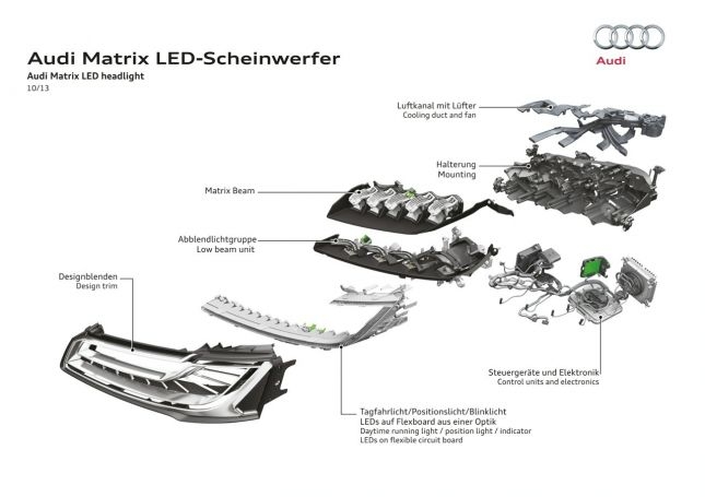 R8의 기하학적인 LED 주간주행등 디자인은 곧바로 A4에 적용됐고 이내 전차종으로 확대됐다. 이후 아우디의 LED 램프 기술은 급속도로 발전했다. 지난 7월 국내에 출시된 아우디 A8 페이스리프트에는 아우디 LED 기술의 절정이라고 할 수 있는 ‘매트릭스 LED’가 적용됐다.
