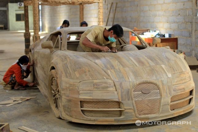 공방을 운영하고 있는 에코루키스티안토(Eko Lukistyanto)는 일전에도 메르세데스-벤츠 300SL이나 각종 모터사이클을 나무로 제작한 경험이 있는 장인이다. 이번에 그는 직원들과 실제 크기와 똑같은 부가티 베이론을 만들었다.
