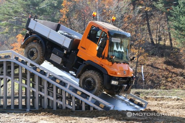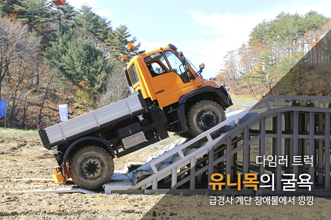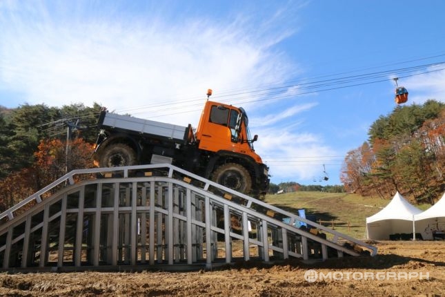 이 자리에서 다임러트럭 코리아는 국내에서 제설차로 유명한 유니목 UGN 시리즈의 오프로드 성능을 뽐내는 시간을 마련했다.