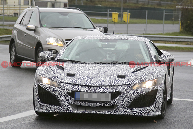 27일(현지시간), 독일 시내도로에서 주행테스트 중인 혼다의 신형 'NSX'가 카메라에 잡혔다.