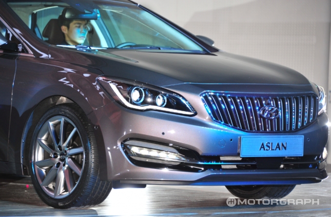 현대차가 30일, 동대문디자인플라자에서 신차 아슬란을 출시하고 본격적인 판매에 나섰다. 아슬란은 그랜저와 제네시스 사이의 간극을 매꾸기 위해 개발된 모델로, 현대차는 아슬란을 통해 고급 수입 세단을 견제한다는 계획이다.