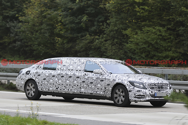 30일(현지시간), 독일 시내도로에서 주행테스트 중인 신형 '메르세데스-벤츠 S600 풀만 리무진'의 모습이 카메라에 잡혔다. 이 차의 엄청난 길이를 보고 스파이는 '투엑스라지(XXL)'라는 표현을 썼다.