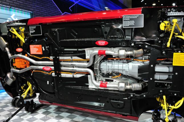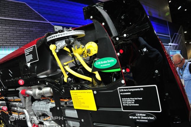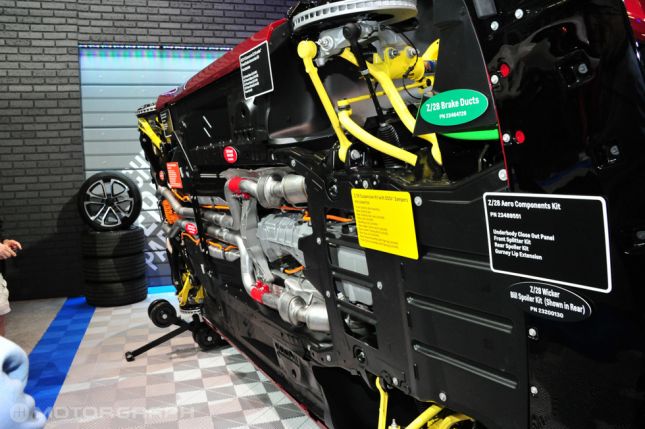 카마로 개러지 콘셉트는 카마로의 고성능 모델인 ZL1과 Z/28에 장착되는 튜닝 파츠를 한눈에 볼 수 있다. 차를 비스듬하게 기울여서 서스펜션, 브레이크, 배기시스템, 스테빌라이저 바, 디퍼런셜 및 쿨링 시스템 등을 확인할 수 있다.