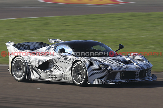 20일(현지시간), 페라리의 본사가 있는 이탈리아 마라넬로의 피오라노(Fiorano) 서킷에서 신형 레이싱카 '라페라리 XX' 테스트카가 출몰했다. 사진을 찍은 스파이는 미국의 LA 모터쇼에서 본 라페라리보다 유럽에서 라페라리 XX를 직접 보는 것이 훨씬 가치있는 일이라고 소감을 밝혔다.