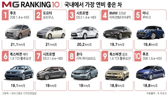 연비는 실제로도 문제가 적지 않다. 국산차 브랜드들은 연비 좋은 디젤차를 축소하거나 고효율 하이브리드 자동차 출시도 꺼려왔다. 일반 휘발유 자동차가 적은 투입 비용으로 더 잘 팔린다는 이유에서다. 실제 국내 판매되는 차들의 연비를 조사해보면 상위 50위권에 국산차는 단 한 종도 없는 정도다.