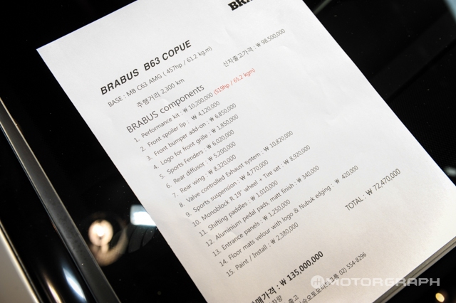 메르세데스-벤츠 전문 튜닝 브랜드에서 튜닝한 C63 AMG의 구체적인 가격이 공개됐다. 휠과 타이어의 가격만 해도 1천만원이 넘어 국산 경차보다 비싸다.