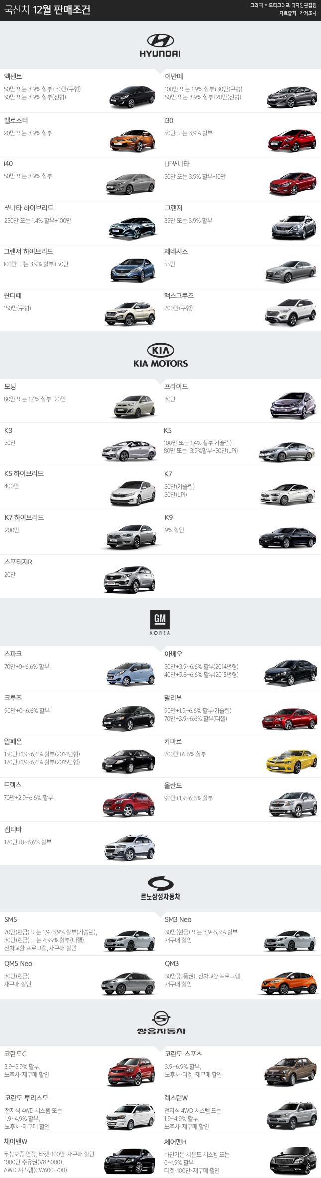 모터그래프는 3일, 국산차 브랜드들의 12월 판매조건을 총정리했다.