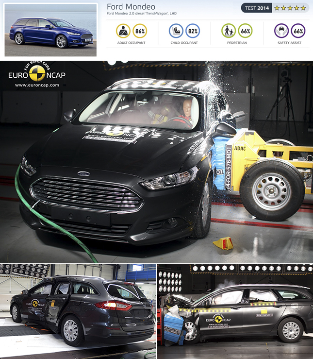 포드 몬데오 왜건은 성인보호 86%, 유아보호 82%, 보행자보호 66%, 안전장비 66% 등의 점수를 받아 종합점수 79.2점을 기록했다. 몬데오는 포드의 유럽 전략 모델로, 최근 모델인 5세대는 중형 세단 퓨전과 통합돼 지역에 따라 차명만 다른 상태로 판매된다. 테스트카는 2.0리터 트렌드 모델로 좌핸들 버전이다.