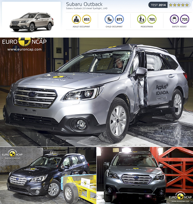 스바루 아웃백은 성인보호 85%, 유아보호 87%, 보행자보호 70%, 안전장비 73%의 점수를 받아 종합 81.2점을 획득했다. 수평대향 박서 엔진과 사륜구동 시스템이 특징인 이 차는 우수한 온·오프로드 성능을 갖췄음에도 왜건 차량의 무덤으로 불리는 국내 시장을 극복하지 못한채 단종 됐다. 하지만 해외에선 세단과 SUV, 왜건의 장점을 갖춘 독특한 매력의 차로 인식돼 여전히 잘 팔리고 있다. 최고수준의 안전성은 덤이다. 테스트 모델은 2.0 디젤 아이사이트 좌핸들 버전이다.