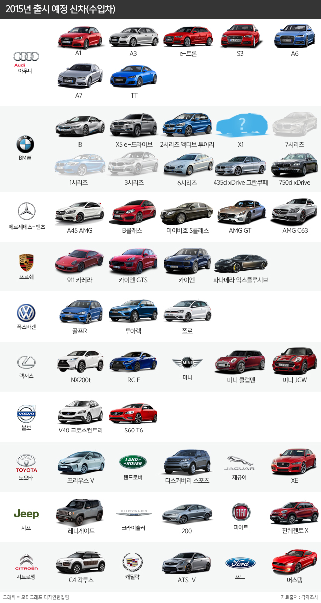수입차 브랜드들도 만만치 않다. 특히 BMW, 메르세데스-벤츠, 아우디 등 독일 프리미엄 브랜드 3사는 소형차부터 고성능 스포츠카까지 5~10종의 신차를 대거 출시한다. 또, 일본과 미국, 유럽 브랜드들도 그동안 국내에 출시하지 않았던 다양한 신차를 선보여 판매량을 늘리겠다는 계획이다.