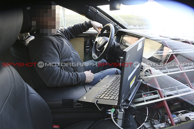 실내는 시험주행차임에 따라 각종 테스트기기와 차량과 연결된 배선 등이 흐트러져 있는 상태다. 운전석에는 기본형과 동일한 대시보드, 센터페시아, 콘솔박스, 디스플레이 등이 적용됐지만, 도어 안쪽 커버가 제거된 상태로 속이 훤히 드러났다. 특히, 도어에 여러개의 얇은 금속판으로 구성된 보호 장치가 적용돼 군사용 차량의 장갑을 연상시킨다. 두께도 일반 S클래스에 비해 월등히 두껍다.