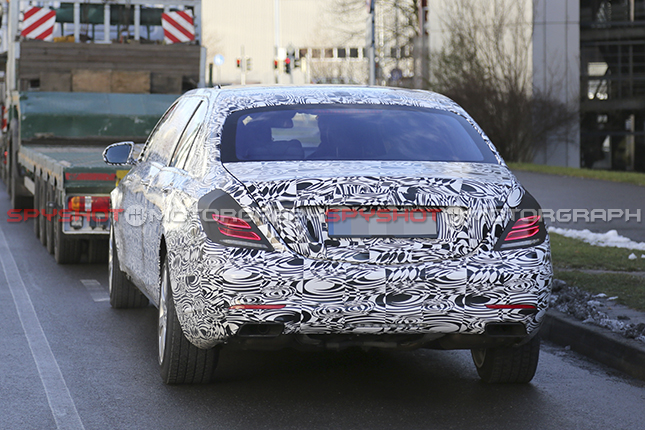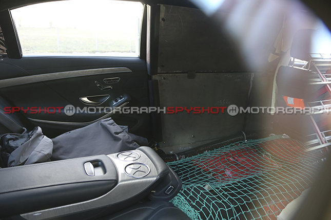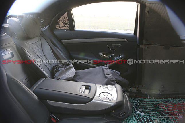 이 차의 실내는 2+2+2의 3열 구조로 2열과 3열이 마주보는 형태로 제작될 예정이지만, 시험주행차의 2열 좌석 시트는 테스트를 위해 제거됐다. 예상대로 매우 넓은 실내 공간을 자랑한다. 또, 테스트카는 4도어를 갖춰 1열과 3열에 도어가 장착됐다. 이전 리무진 모델 중엔 2열에도 도어가 적용돼 총 6개의 도어를 갖춘 차도 있다. 3열 좌석은 기존 S클래스의 고급 가죽 시트와 암레스트가 적용됐다.