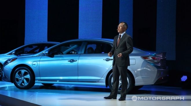 2일(현지시각) 미국 디트로이트 코보센터에서 개최된 디트로이트모터쇼 기자행사에서 현대차는 쏘나타 플러그인 하이브리드를 세계 최초로 공개했다. 연비는 93MPGe(약 39.5km/l)에 달하며 이는 도요타 프리우스(95MPGe)에 버금가는 수치다.
