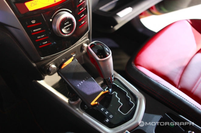 티볼리 실내는 ‘움직이는 IT 공간’을 주제로 운전자 행동 분석을 통해 터치 방식의 조작비율을 늘리고, 바(bar) 타입의 스위치 디자인을 적용한 것이 특징이다.