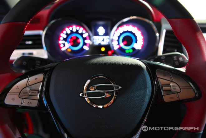 블랙, 베이지, 레드 등 3가지 색상을 고를 수 있는 실내에는 국내 최초로 ‘6컬러 클러스터’가 적용됐으며, 조종 감도를 3가지(노멀, 컴포트, 스포트)로 조절할 수 있는 스마트 스티어가 장착됐다.