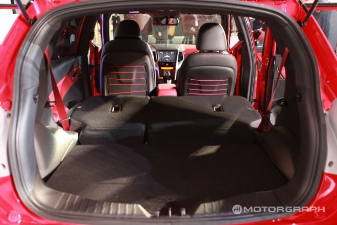 블랙, 베이지, 레드 등 3가지 색상을 고를 수 있는 실내에는 국내 최초로 ‘6컬러 클러스터’가 적용됐으며, 조종 감도를 3가지(노멀, 컴포트, 스포트)로 조절할 수 있는 스마트 스티어가 장착됐다. 특히, HDMI를 이용해 스마트폰의 화면과 사운드를 7인치 컬러 디스플레이를 통해 그대로 재현하는 미러링 기술이 탑재됐으며, 스마트 패드와 노트북 등 다양한 IT 기기들을 센터 콘솔과 글러브박스 등에 간편하게 넣을 수 있도록 넉넉한 수납 공간도 갖췄다.
