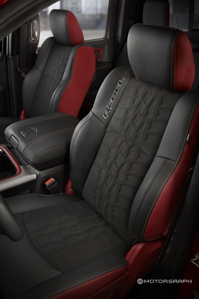 닷지는 이 차를 오프로드에 특화된 트럭이라고 설명했다. 램 1500 레블은 블랙 색상의 거대한 라디에이터 그릴과 특수 코팅된 프론트 범퍼를 갖췄고, 실버 스키드 플레이트와 두 개의 견인용 후크를 장착했다. 또, 헤드라이트엔 LED가 적용됐고, 두 개의 공기통로를 갖춘 알루미늄 스포츠 후드를 갖췄다.